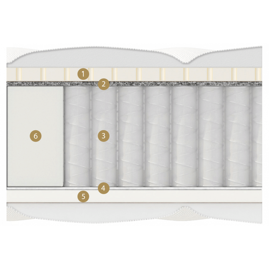 Первая сторона ощущается как умеренно мягкая. Натуральный латекс и термофиксированный фетр в её составе прекрасно пропускает воздух, благодаря этому достигается оптимальная температура спального места. Латекс мягкий, но упругий материал идеально подстраивается под контуры тела и создает поддерживающий и одновременно расслабляющий эффект для мышц и суставов.