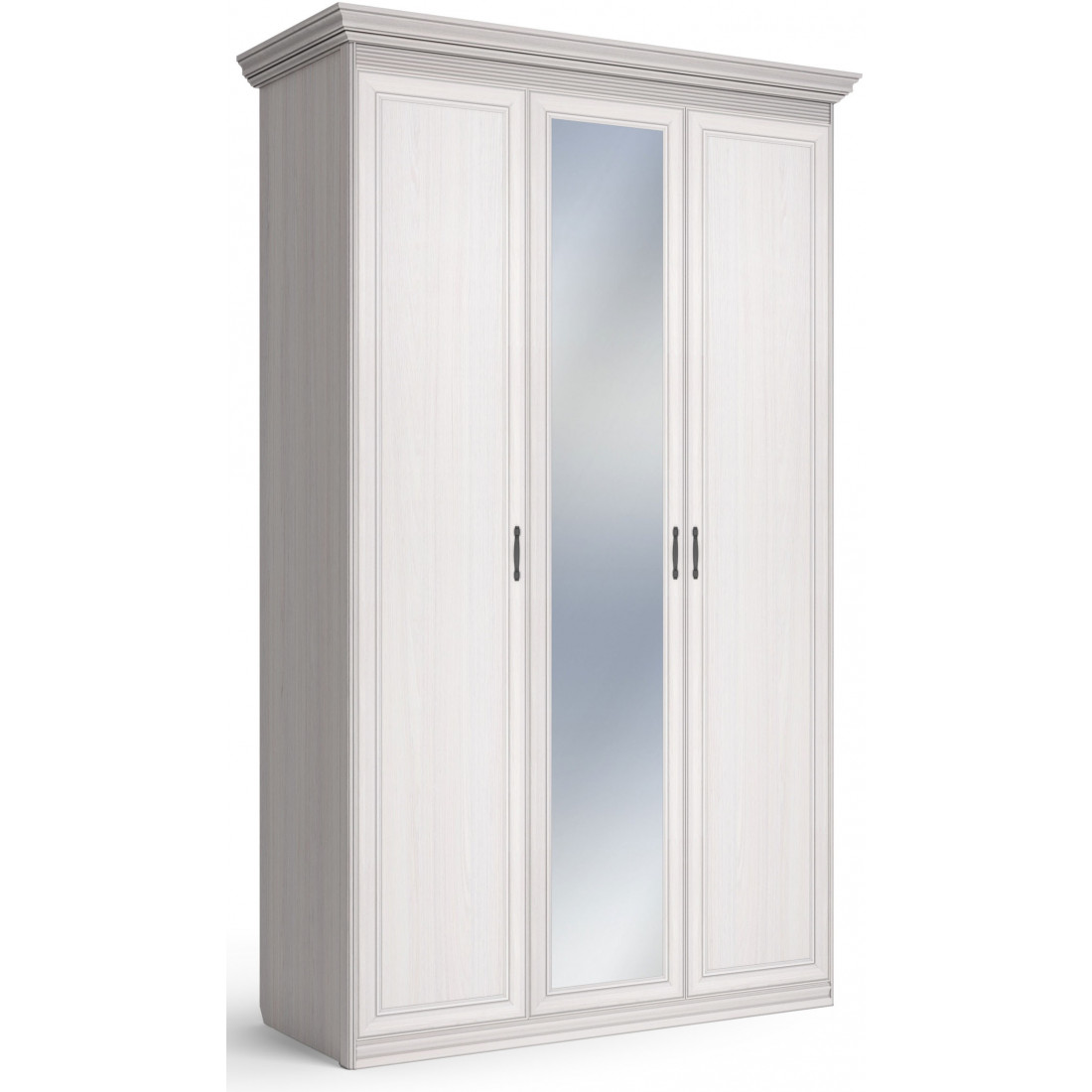 Шкаф 3-х дверный зеркальный Неаполь Ясень анкор светлый (патина "серебро")