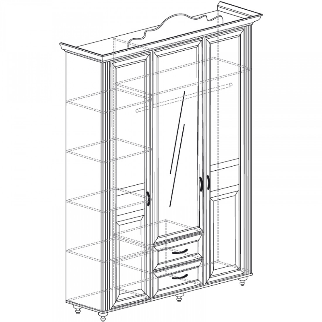 Шкаф 4-х дверный с зеркальными и глухими дверями Неаполь Ясень анкор светлый (патина "серебро")